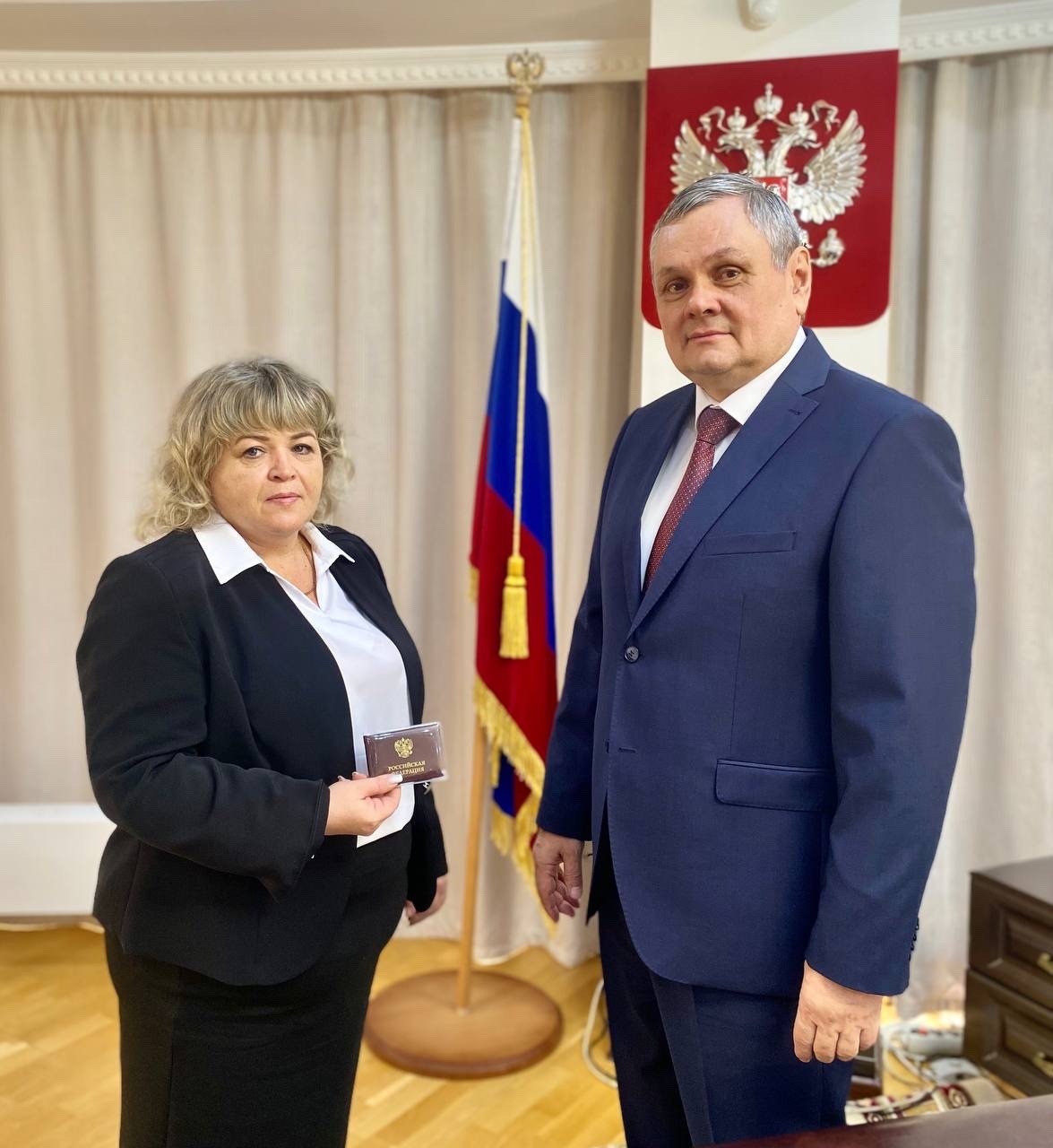 Сегодня, 8 апреля 2025 года, в Астраханском областном суде состоялось торжественное вручение председателем Астраханского областного суда В.Л. Петренко служебного удостоверения председателю Красноярского районного суда Астраханской области Бусаровой В.С., назначенной Указом Президента Российской Федерации от 18 марта 2025 года № 153. Коллектив Красноярского районного суда Астраханской области поздравляет Веру Сергеевну с этим событием и желает плодотворной деятельности на благо судебной системы России! |